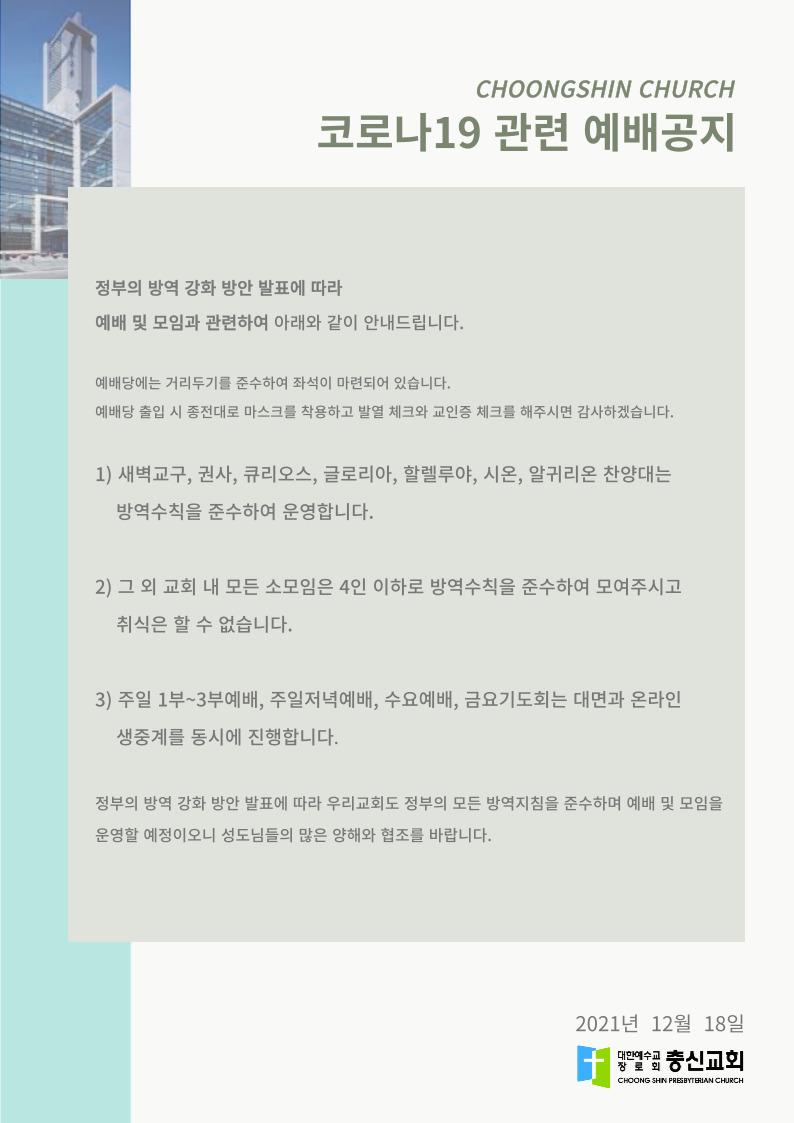 코로나19 정부 발표에 따른 예배 안내(12월 18일 시행)