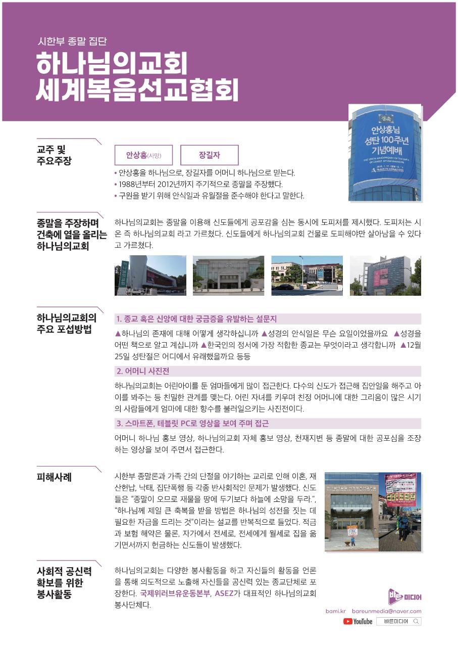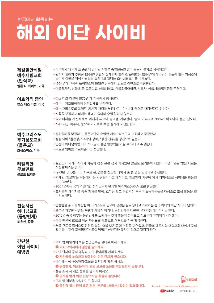 , 하나님의교회, 구원파, 통일교, JMS, 한국에서 활동 중인 해외 이단 및 예방법 등 총 5종으로 구성되어,