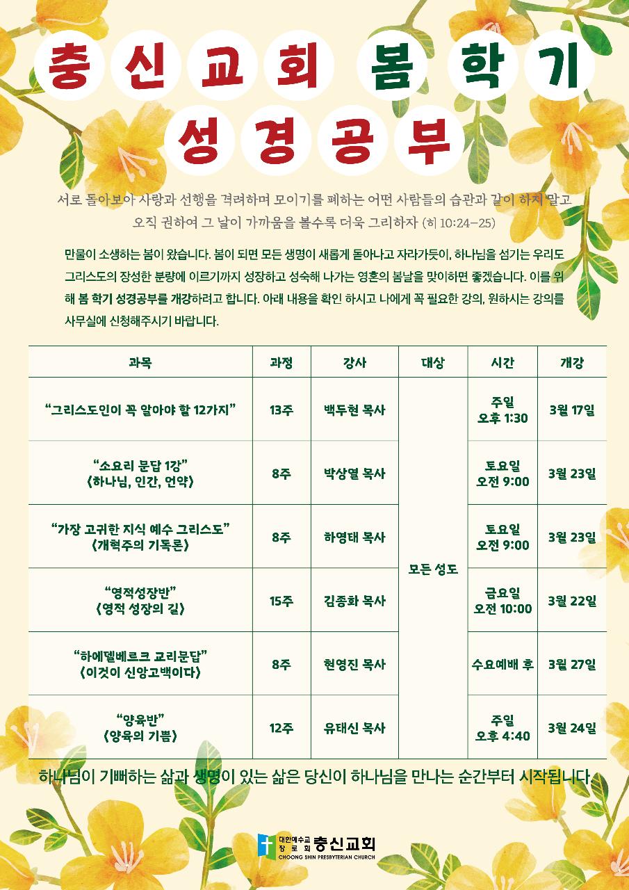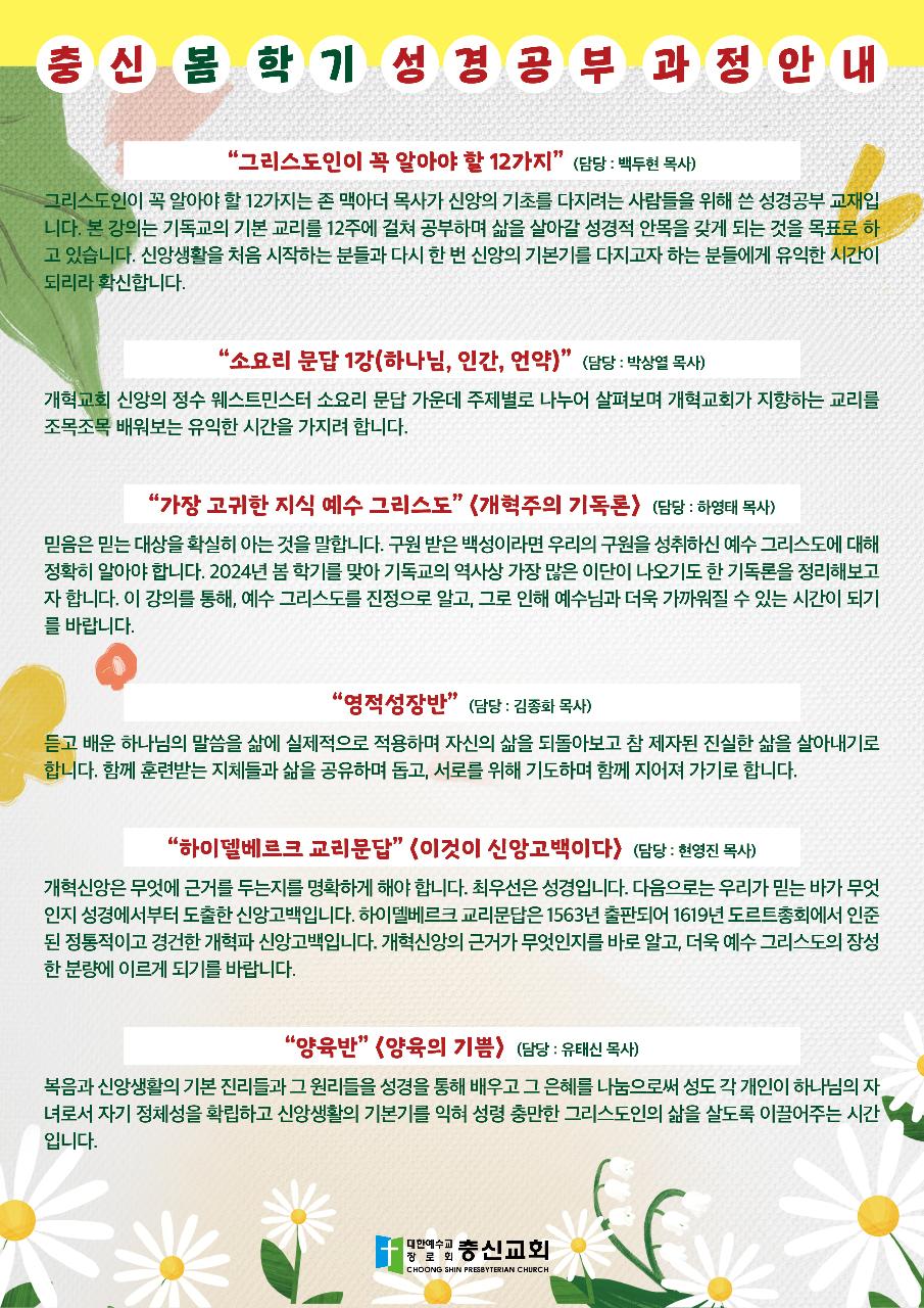 ◎ 내용: 2024년 봄학기 성경공부를 시작합니다.