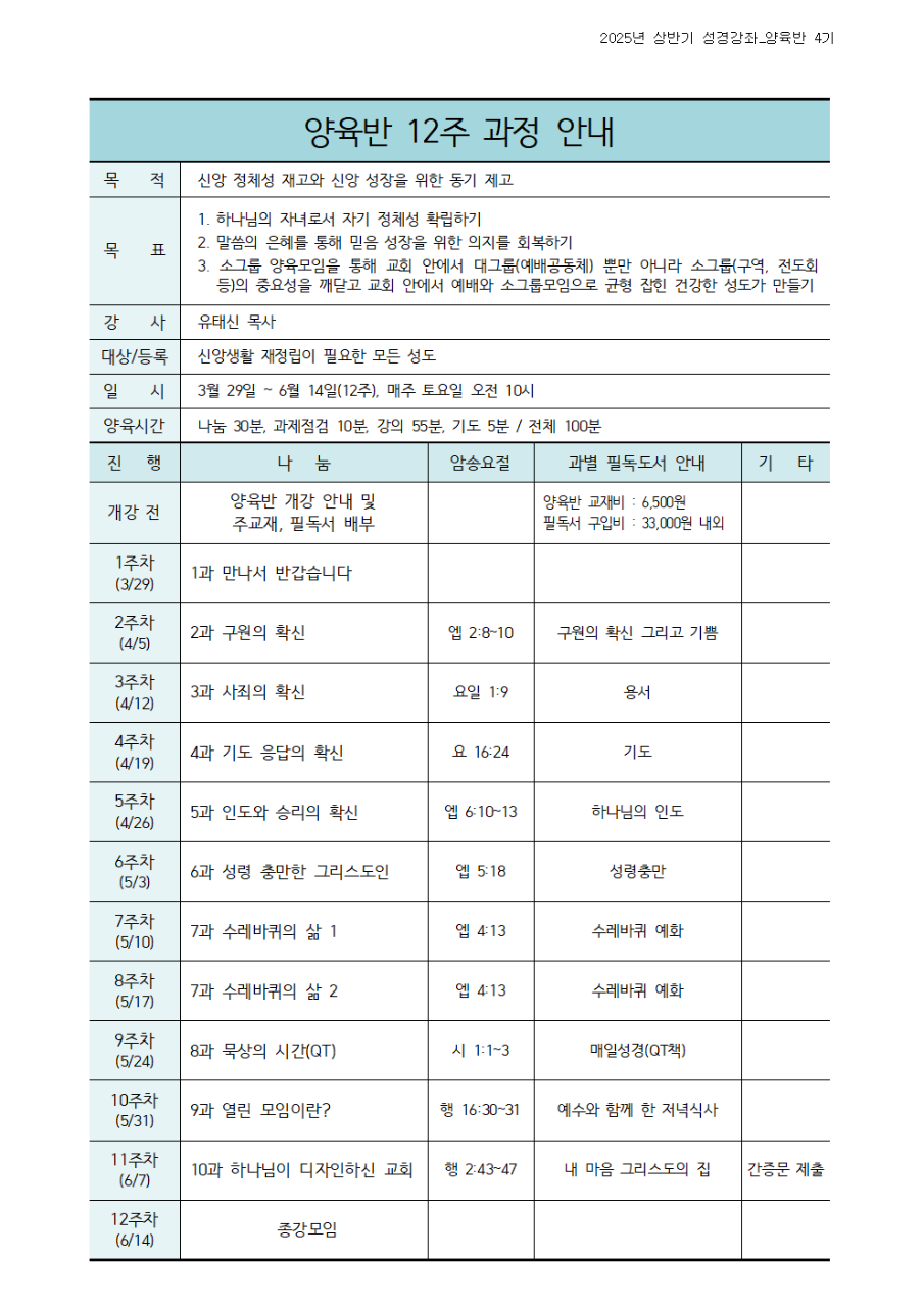 2026년 교회 봉사자 및 교육부서 교사 모집