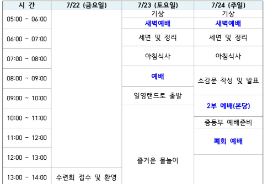 2022 중등부 여름 수련회 일정표